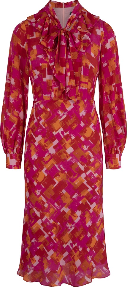 Il segreto è il colore, trattato dal brand come la tavolozza di un pittore, che disegna sulla morbida seta un’inedita fantasia a scacchi e sceglie le nuance sature del fucsia, dell’arancio e del rosa per trasmettere vibrazioni positive al primo sguardo.