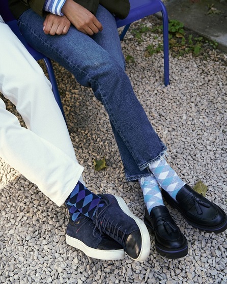 Le calze SANDY da donna e DANNY da uomo, ispirate al mood rockabilly degli anni ’50 dell’intramontabile film Grease, reinterpretano il classico motivo argyle in chiave moderna con piccoli rombi colorati che si uniscono per creare un design pulito e contemporaneo. Realizzate con cotone biologico di alta qualità, assicurano il massimo comfort, mentre il design moderno e l’iconica clip del marchio posizionata sulla sinistra completano ogni modello.