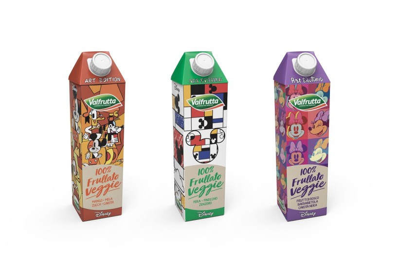 Valfrutta presenta una nuova e straordinaria collaborazione con i personaggi più iconici del mondo Disney come Topolino e i suoi amici (Mickey&Friends), impreziosita dalla creatività di tre grandi maestri dell’arte contemporanea.