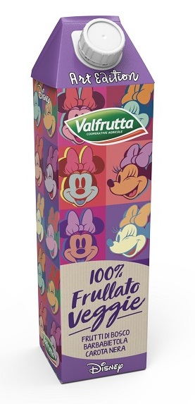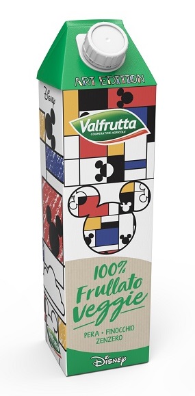 Il nuovo Special Pack Art Edition di Valfrutta 100% FRULLATO VEGGIE, concepito come un viaggio nell’arte pop e contemporanea, unisce la contagiosa simpatia di Topolino e dei suoi amici al gusto autentico della migliore frutta da bere unita alla verdura, come accade per i Frullati Veggie di Valfrutta.