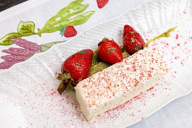Il menu stagionale cattura l’essenza e i colori dei sapori più tipici della primavera – nelle parole del Creative Food Director per Rocco Forte Hotels: “I colori del cibo primaverile sono: il morbido verde di fave, piselli e asparagi; il bianco della ricotta, dei formaggi freschi e dei tartufi di marzo; il rosso delle prime fragole“. Questa suggestione per la proposta stagionale è stata fonte di ispirazione per Lucia e Guido Caponi, figli della capostipite Loretta, che hanno curato il design delle creazioni e i ricami realizzati per il ristorante Irene.