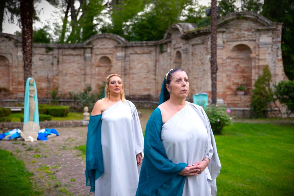 Indossando abiti ispirati all’Antica Roma, ogni attrice ha salutato il sorgere del sole ammirando le colonne simboliche, il Trasimeno, le sue creature e le sue isole preziose per un messaggio di pace e amore in connessione con gli elementi della natura.