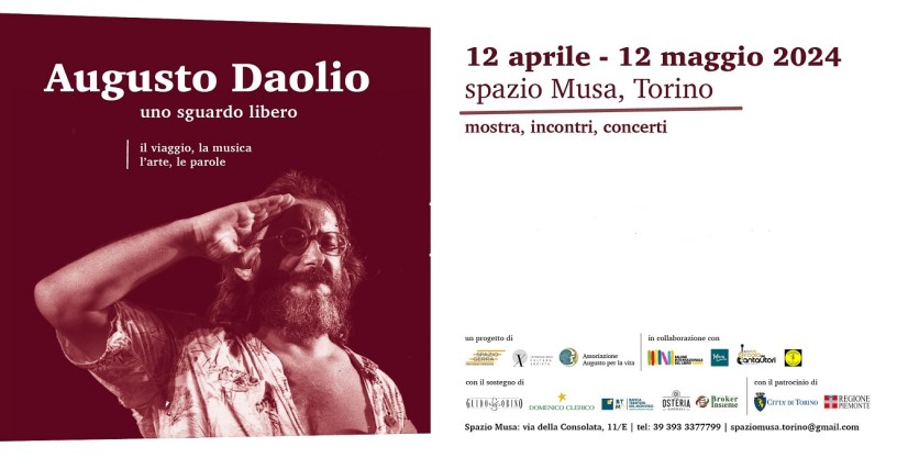Per celebrare la figura di Daolio, inconfondibile nei capelli lunghi, barba, occhiali e voce unica, arriva a Torino, nelle sale di Spazio Musa (Via della Consolata 11/E) dalll’11 aprile al 13 maggio, la mostra “Augusto Daolio: uno sguardo libero” che ha avuto straordinario successo a Reggio Emilia nel 2022 e che illumina, accanto alla storia dell’autore e del cantante, i talenti multiformi di un artista che era anche un pittore e scultore autodidatta.