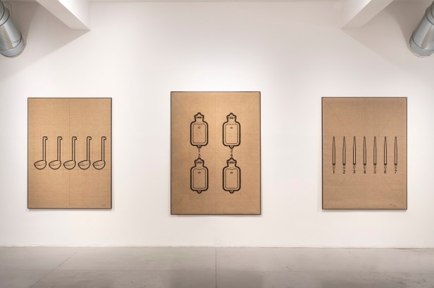 Si parte dalle opere storiche, che svelano la meticolosa esplorazione di Tino Stefanoni degli oggetti del quotidiano. A partire dagli anni Settanta tazzine da caffè, imbuti, bicchieri, mestoli, buste da lettera, borse dell’acqua calda e matite dominano il linguaggio visivo dell’artista, declinato su tavola, su ferro, su tela per poi estendersi fino alla scultura e all’installazione. Il percorso di mostra prosegue sino agli anni Ottanta, che vedono le ricerche dell’artista convogliate verso la rappresentazione frammentata di paesaggi dalle linee vaporose.