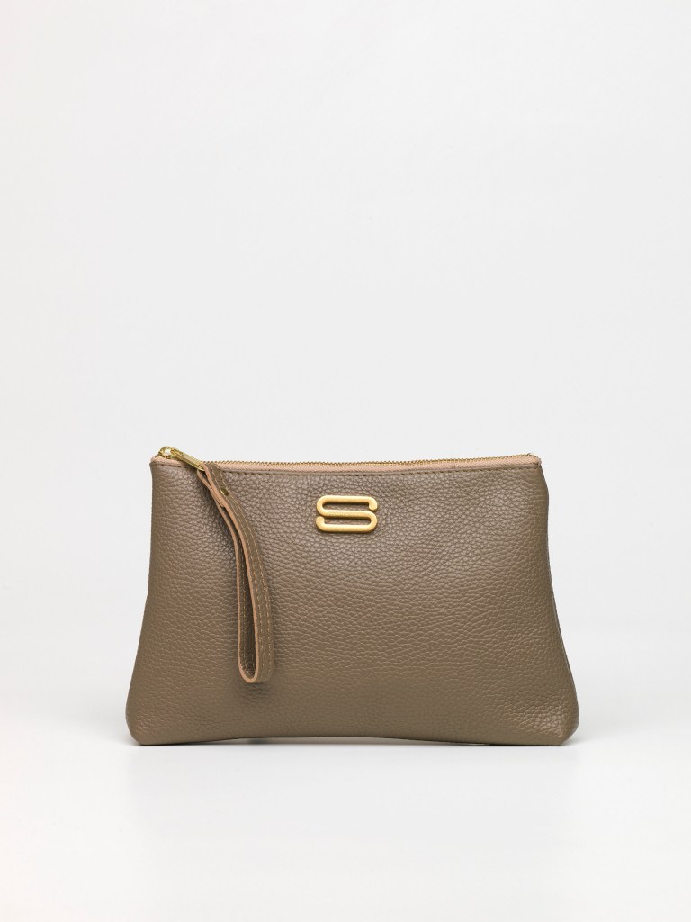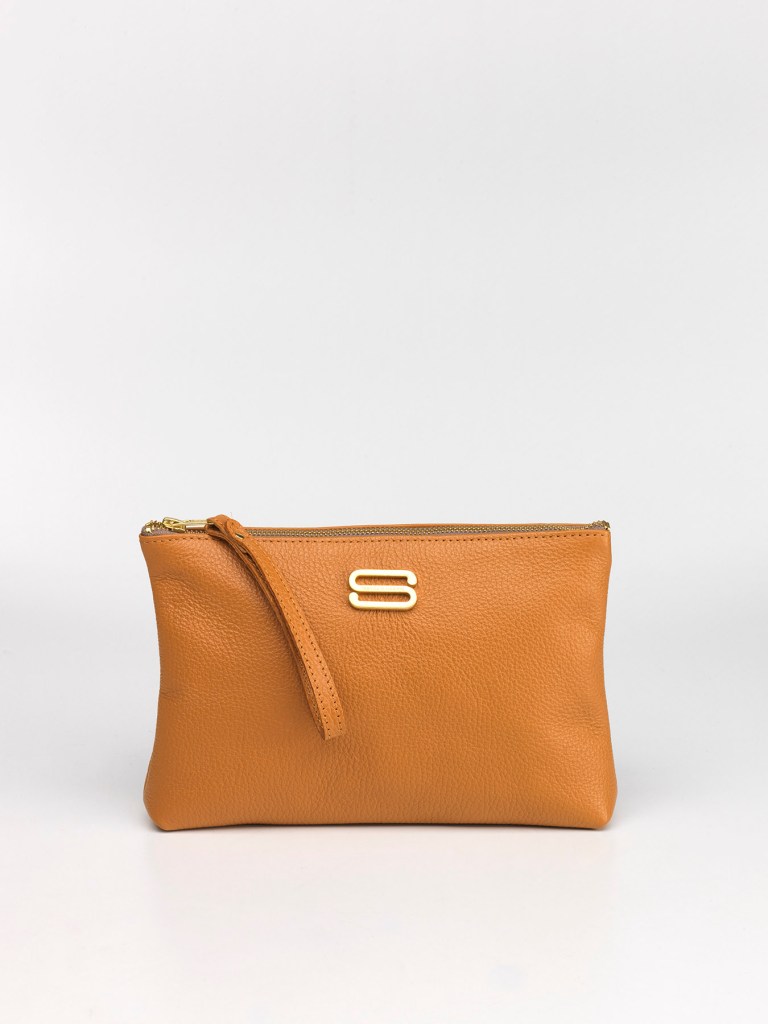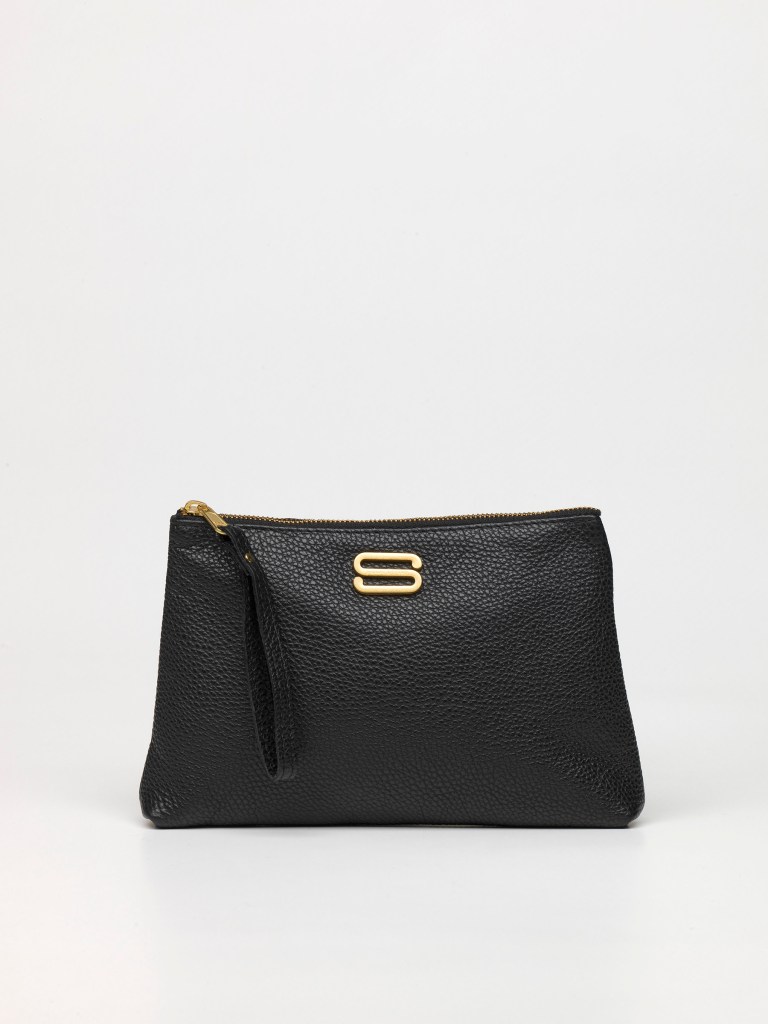 Corpo realizzato in pelle bottalata ad alto spessore per garantire massima resistenza, polsino in pelle per agganciarla all’interno di grandi shopper, per portarla a polso o come beauty da viaggio.