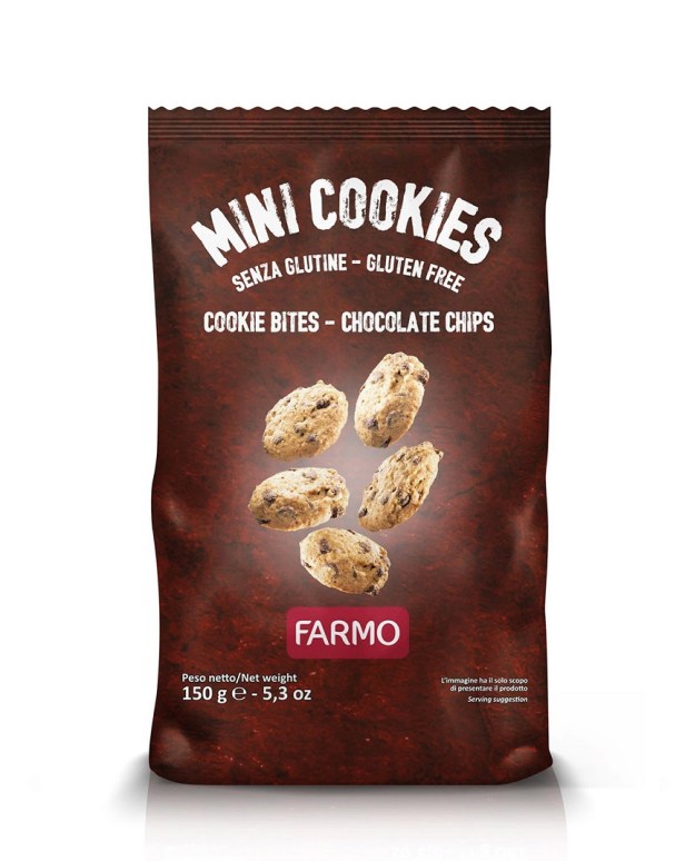 Dalla tradizione americana nascono i Mini Cookies Farmo senza glutine. Con la loro croccantezza senza eguali unita alla golosità delle gocce di cioccolato, sono una dolce carezza per tutti. Ideali per una colazione tutti insieme o per dare allegria alle merende pomeridiane. Il sacchetto da 150 grammi è in vendita a €3,50.Questo prodotto è acquistabile, per i residenti in Lombardia, tramite Bonus Celiachia su shop.farmo.com/