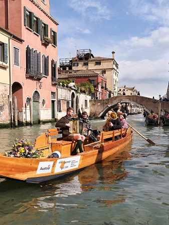 A inaugurare i progetti culturali legati a Bad Ischl, è stata una straordinaria iniziativa in occasione della pre-apertura della 60esima edizione della Biennale di Venezia, tenutasi il 18 aprile. Protagonista, sotto i riflettori internazionali, il cosiddetto “Plätte-Taxi”, tipico dell’area di Salzkammergut, che ha navigato tra i canali veneziani insieme alle classiche gondole della città.