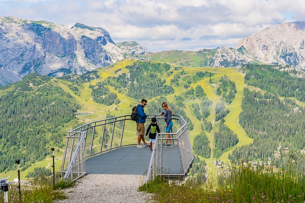 Gli Alti Tauri con il Grossglockner a nord, le Alpi Carniche e le Dolomiti a ovest, oppure le Alpi Giulie a sud: la Sky Walk sul Gartnerkofel, nel comprensorio sciistico ed escursionistico Nassfeld/Pramollo – lago Pressegger See, offre un puro spettacolo dalla vetta ed è un punto fotografico molto ricercato in questa zona alpina.