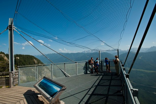 Chi non soffre di vertigini, può guardare in basso: la piattaforma panoramica a sbalzo per oltre 7 metri sul versante sud del Dobratsch, a circa 1.500 metri d’altitudine, offre una vista grandiosa sull’abisso della Rote Wand, un’enorme parete rocciosa di colore rossastro. Non è da meno il magnifico panorama che si gode sulla valle Gailtal fino alle Alpi Giulie. Facilmente accessibile dal parcheggio 6 sulla strada panoramica Villacher Alpenstrasse.