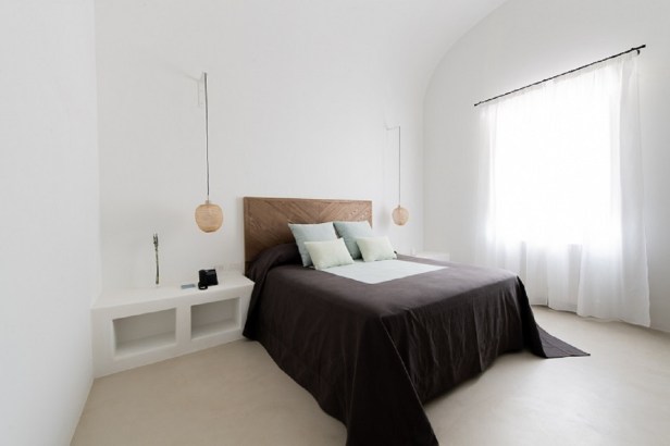 Pavimenti in micro-cemento, pareti in calce bianca, arredi in muratura e in legno, lavabi in pietra calcarea, cementine artigianali nei bagni realizzate manualmente da una storica azienda di Santa Flavia su disegno degli architetti: sono tutti elementi che definiscono un concetto di lusso colto, non artefatto. “Trovandoci davanti a una natura così potente e a un luogo così ricco di suggestioni, negli interni abbiamo agito seguendo una poetica della sottrazione: abbiamo disegnato ogni dettaglio, con grande cura ma senza aggiungere orpelli, per definire in ogni ambiente un’eleganza e un’essenzialità che restituisse l’idea di un lusso raffinato e sobrio: quello del tempo che passa lento, nella bellezza delle cose semplici”, spiega l’architetto Floriana Marotta.