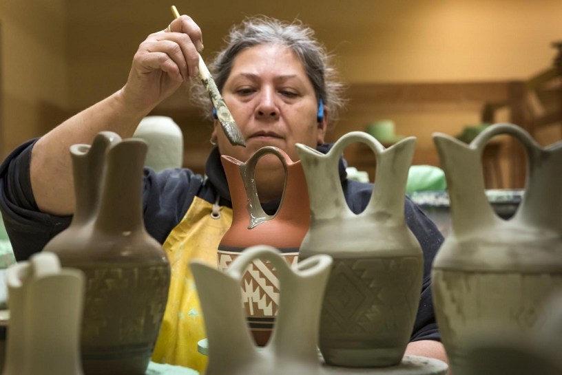 La compagnia di tamburi si trova nel centro di Rapid City per 20 dei suoi 30 anni di attività. Il lavoro fatto da Dakota Drum Co. è veramente arte. I tamburi tradizionali includono mano raschiato bufalo rawhide, “un lavoro ad alta intensità che richiede stendere su un telaio il pellame e meticolamente rimmuovere carne e peli dell’animale con un raschietto tradizionale“, secondo l’organizzazione. Ma il procedimento crea un tamburo più elastico con meno probabilità di rompersi dopo pochi anni. Dakota Drum produce tamburi bifacciali da legno di cotone e tamburi unilaterali da cerchi d’acero. I tamburi misurano da 17 a 150cm. Sonja Holy Eagle, cresciuta sulle riserve di Cheyenne River e Pine Ridge, è l’artista che dipinge i tamburi usando tecniche tradizionali. “Queste vernici sono fatte da vari colori di roccia terra ad una polvere fine e mescolato con acqua. Dopo aver dipinto un tamburo, mettiamo un sigillante sopra il dipinto che lo rende permanente e impermeabile. I tamburi sono intricati e belli. Il negozio offre lavorazioni tradizionali con perline e aculei di istrice creati da artisti delle riserve di Cheyenne River, Pine Ridge, Standing Rock e Rosebud, insieme a belle vesti di pelli di bisonte, sweet grass e artemisia, insieme a molte altre arti tradizionali e gioielli