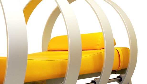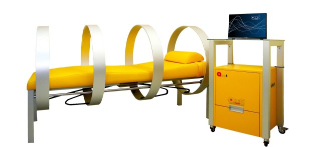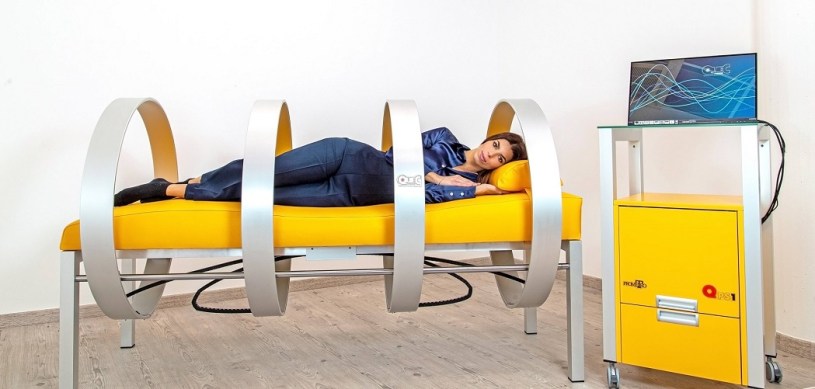 La postazione consiste in un soffice lettino circondato da anelli magnetici.