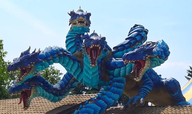 L’ultimo arrivato è Idra: un gigantesco esemplare di 55 quintali per 18 metri di lunghezza e 6.5 metri di altezza, con 7 teste dallo sguardo minaccioso che sorvegliano le principali attrazioni del parco.