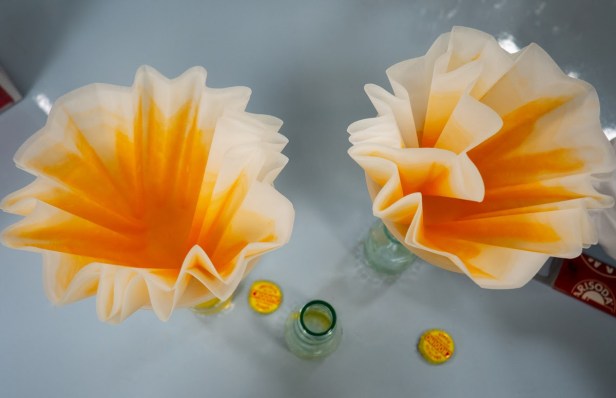 Le sue fotografie, organizzate in dittici e trittici, compongono una sceneggiatura visiva ispirata all’eleganza celata nei processi di produzione e imbottigliamento, che quotidianamente prendono vita nell’impianto industriale Campari Group a Novi Ligure. L’uso sapiente di un tempo di otturazione dilatato, pensato per catturare il momento perfetto, trasforma i movimenti, i colori dei liquidi e le sagome delle bottiglie, tra cui la celebre silhouette tronco conica di Campari Soda, in elementi di una composizione astratta e dal sapore onirico.