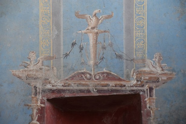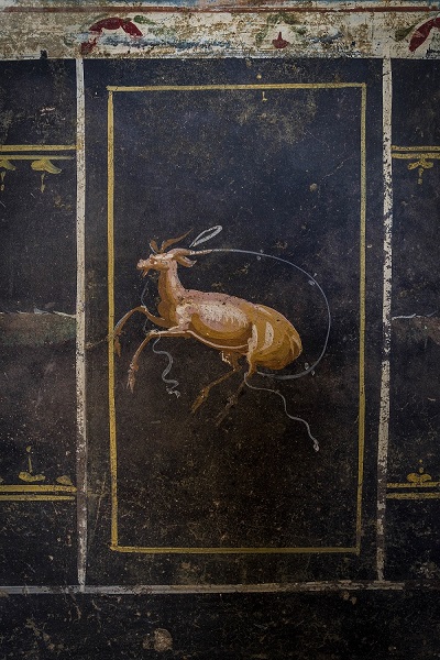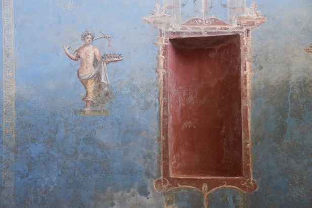 Il colore azzurro qui ritrovato era raramente testimoniato negli affreschi pompeiani e in genere era presente in ambienti di grande impegno decorativo.