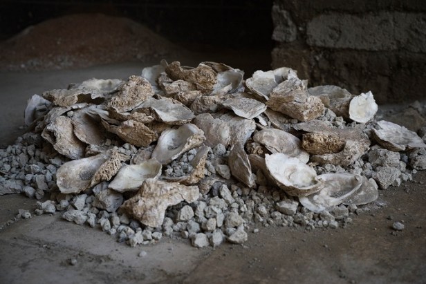 Sulla soglia d’ingresso è stato rinvenuto un mucchio di gusci di ostriche già consumate che, probabilmente, una volta tritati venivano aggiunti agli impasti per gli intonaci e le malte.
