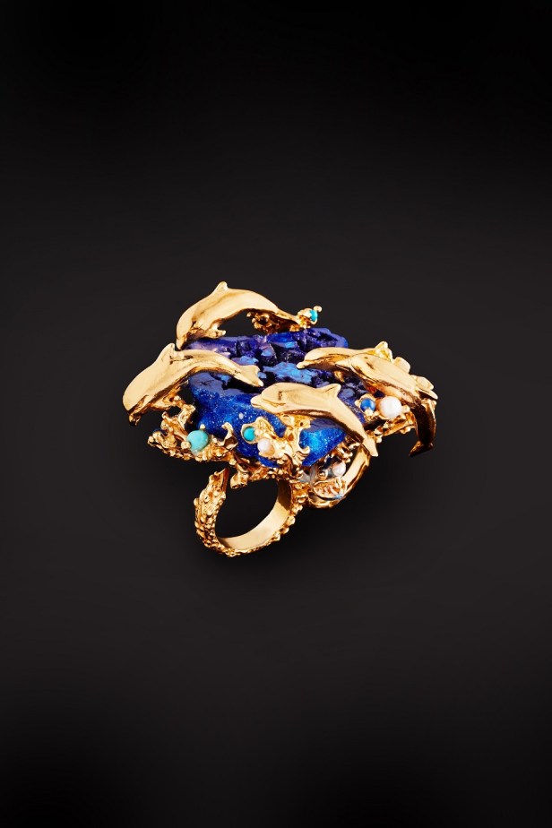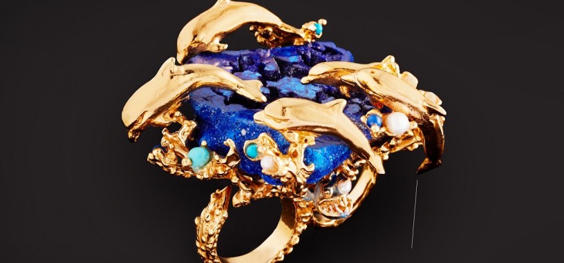 L’anello Profondo Blu abbellito da un’intensa azzurrite, sulla quale delicati delfini in argento dorato saltano e si rincorrono; il bracciale Drago, sontuoso e imponente, la cui ispirazione fantasy si confronta con la forza materica del metallo e gli artigli sembrano quasi avvolgere e dominare il polso umano, mentre un frammento di quarzo color arancio-ruggine rimane incastonato dietro la testa del mostro; la collana Bollicine in un pregevole calcedonio color violetto, con le bolle sferiche realizzate in bronzo bianco ed alcune luminose perle barocche… Un lavoro di creazione e ricerca che via via si riflette anche nell’animo stesso del brand toscano, influenzando e offrendo linfa vitale alle nuove proposte e collezioni stagionali.