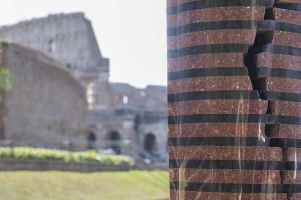 Innestata con attenzione nel cuore storico più antico e iconico di Roma, “Colonne infinite” si sviluppa ai vertici di un triangolo ideale che collega il Tempio di Venere, la piazza della Bocca della Verità e l’area antistante l’antico Septizodium. Le colonne in marmi e graniti policromi di Park si ergono con intenzioni diverse in ciascuno di questi luoghi.