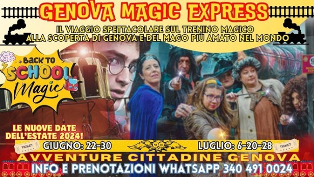 Genova Dreams Aps e Avventure Cittadine annunciano i viaggi dell’estate 2024 del “Genova Magic Express” il Trenino Magico dedicato a tutti i fan di Harry nel tragitto suggestivo tra boschi, colline e panorami mozzafiato Genova-Casella da vivere con la divisa della casa e la bacchetta magica senza limite di età.