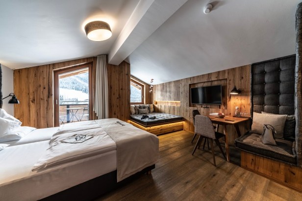 E alla fine della giornata, per tutti un buon sonno al fresco, nelle stanze dell’hotel, grandi e luminose: oltre alle camere classiche, dove respirare tutto il calore dello stile alpino, gli ospiti possono anche scegliere di dormire nelle lussuose Suite Premium, che oltre a spazi ampi e all’arredamento di design offrono area Spa privata con cabina a raggi infrarossi o sauna finlandese panoramica con vista sulla vallata.