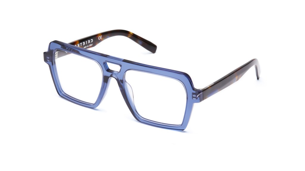 BOOGYE MAN – Montatura vista uomo con doppio ponte dal frontale cristallo blue, asta yellow blu Havana. Stile contemporaneo e geometrico, ideali per coloro che si sentono dei moderni Clark Kent. Sul terminale dell’asta il QR CODE che permettere di accedere al mondo di Lightbird.