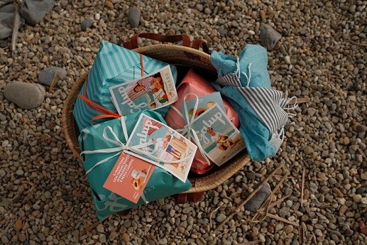 Il PANETTONE D’AMARE– confezionato a mano con rafia ed incarti dai toni pastello è arricchito da un pendaglio che è anche una cartolina postale.