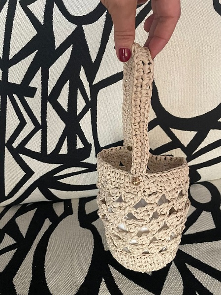 Atelier.C Firenze, dal suo spazio in via della Spada 38, quest’anno propone una versione in miniatura dell’iconica borsa intrecciata, rivisitata nella shape secchiello, tutto prodotto rigorosamente all’uncinetto in una preziosa rafia di viscosa.