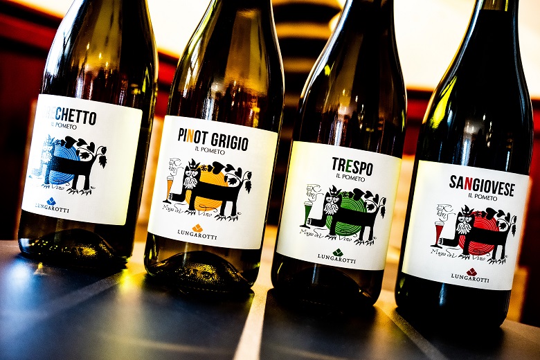 C’è un VINOGATTO sulla nuova etichetta dei vini Il Pometo di Lungarotti. Un felino che brinda, ripreso da un ex libris esposto al Museo del Vino di Torgiano che quest’anno festeggia 50 anni.