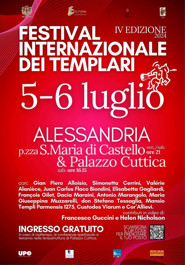 Storici e cantanti, scrittori e rievocatori, poeti, musicisti si ritroveranno in Alessandria venerdì 5 e sabato 6 luglio nella splendida cornice Santa Maria di Castello, in occasione della quarta edizione del “Festival internazionale dei Templari” per raccontare nel corso di tre eventi la storia, il mistero e la leggenda dei famosi frati-cavalieri del Medioevo, ancora presenti nel nostro immaginario collettivo.