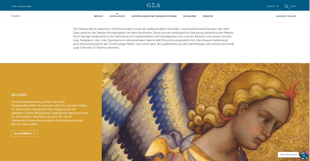 Il portale web della Galleria dell’Accademia di Firenze dedica un focus sulle singole opere e mette a disposizione un ampio palinsesto di contenuti digitali, un’offerta culturale dal valore inestimabile.