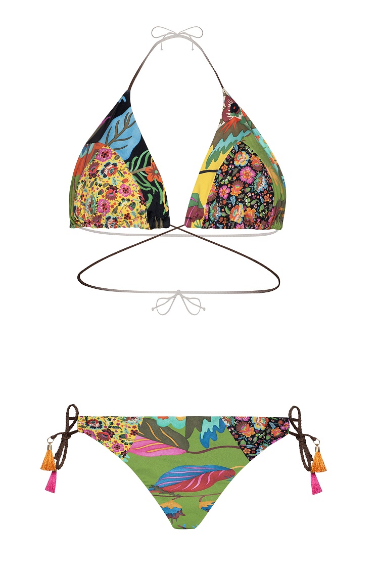 Così la donna Miss Bikini si veste di fiori tra romantici macramé in cotone e bikini dai laccetti effetto cuoio impreziositi da coloratissime nappine; le stampe fiorate si mixano tra di loro, accompagnate dal ricamo sulla base in tinta unita oppure in un mix patchwork vivace e ricco di dettagli… in blooming!