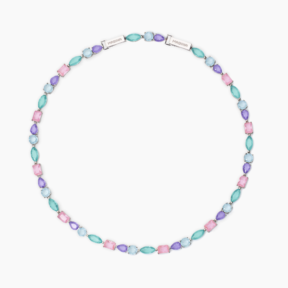 Ma le nuance ammaliatrici non sono l’unica particolarità della collezione: le pietre scelte da Mabina, infatti, sono “fusion”, trattamento che rende il cristallo di rocca opalescente.