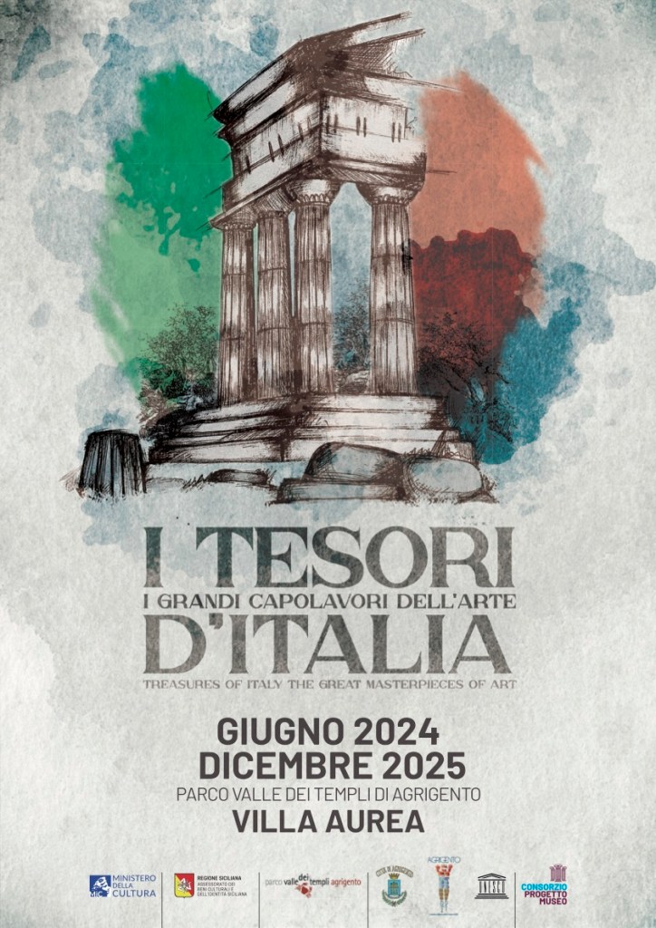 I Tesori d’Italia – I capolavori dell’arte gode del patrocinio di: Ministero della Cultura; Regione Siciliana Assessorato dei Beni Culturali e dell’Identità siciliana; Parco Valle dei Templi di Agrigento; Città di Agrigento.