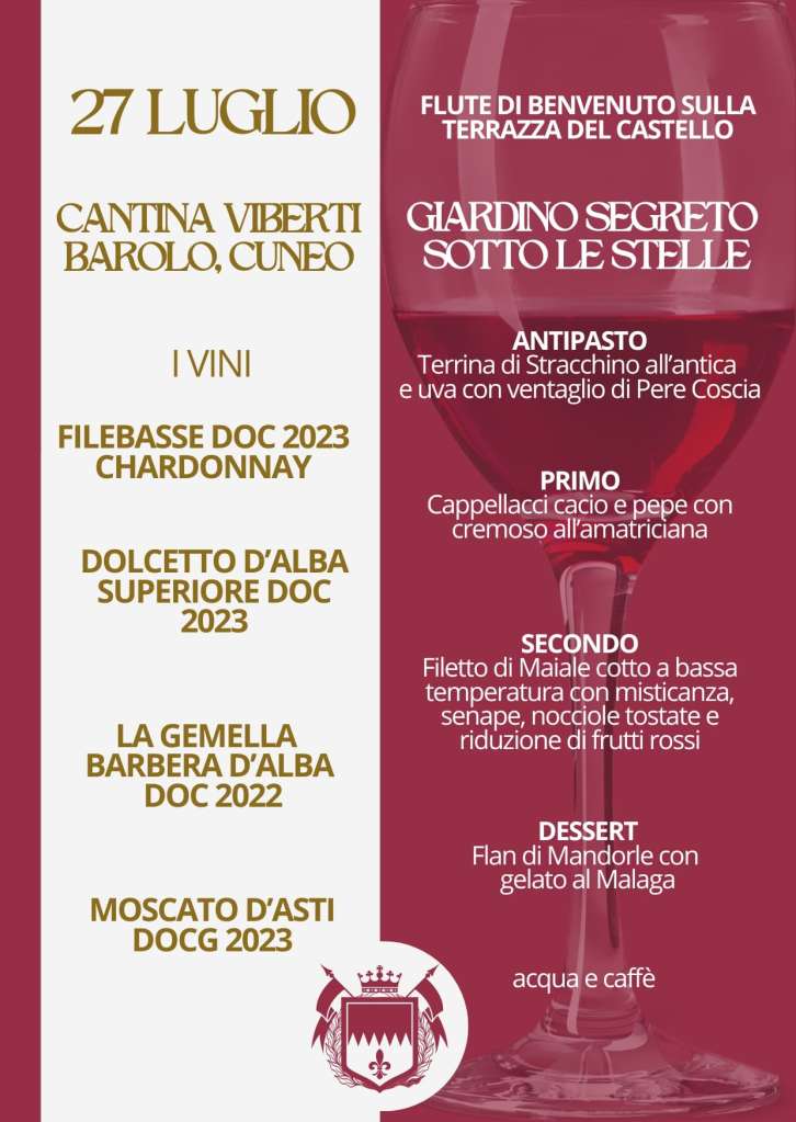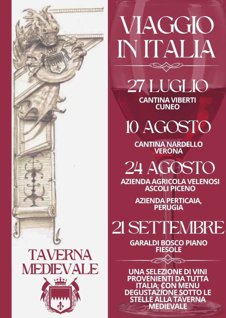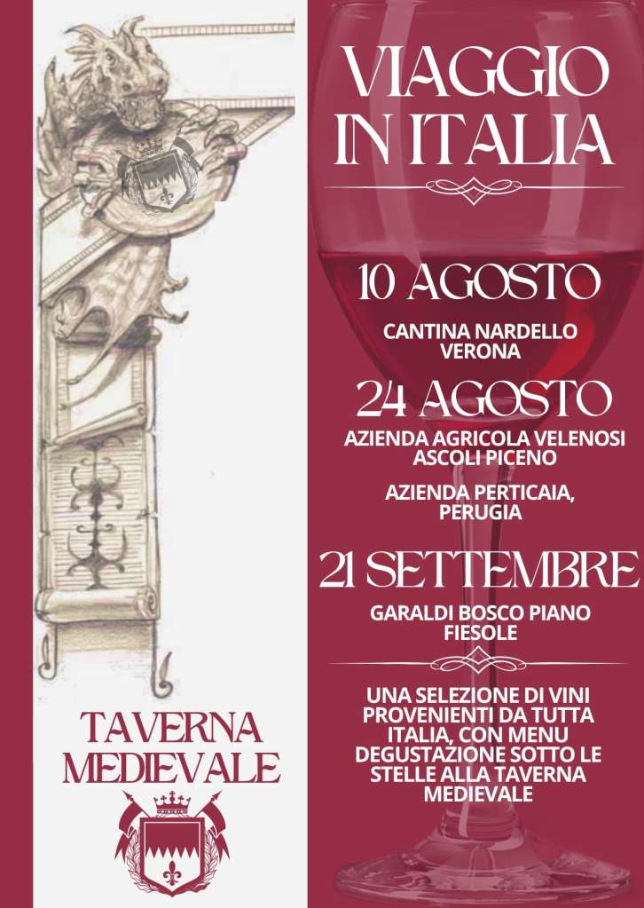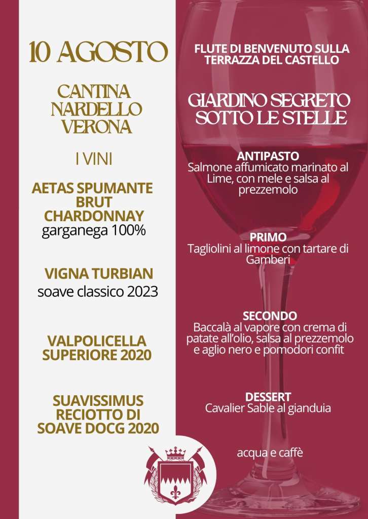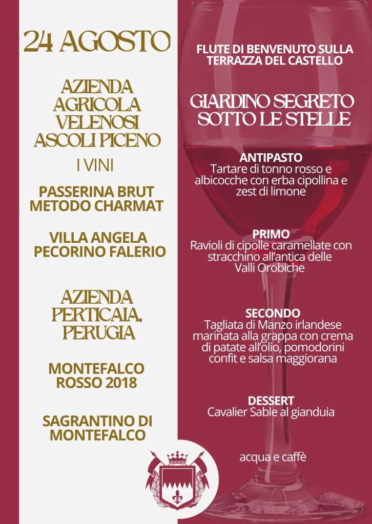 Protagoniste delle serate quattro vini di terre di grandi storie. Piemonte, Veneto, Umbria e Marche, Toscana le regioni coinvolte in questo evento. Prevista anche la visita guidata al Castello.
