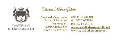 “La nostra Mission è trasmettere i Valori alle giovani generazioni e avere cura del territorio e del complesso monumentale e naturalistico del Castello di Gropparello affinché tutti ne possano godere. Da qui l’importanza di avere Aziende Amiche che scelgono la nostra realtà per i propri Eventi. We work with respect for Humanity and for all Creation.Build a Virtuous circle with us!!!”