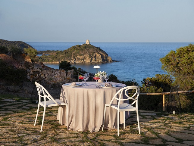 Luogo adatto in cui organizzare eventi privati per tutta l’estate. La nuova terrazza immersa nella macchia mediterranea e protesa sul mare, che sorge sulla collina del Baia di Chia Resort Sardinia,