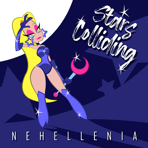 “Stars Colliding”, scritto da Emanuele Aruta (Nehellenia), composto da Massimo Moi e Francesco Tosoni, che si è occupato anche della produzione del brano,è nato dal desiderio di Nehellenia di esprimere la sua identità artistica in un contesto globale.