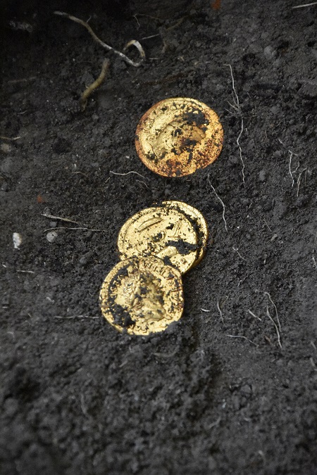 L’ultimo ritrovamento, di cui è stato appena pubblicato sull’E-Journal degli Scavi di Pompei un primo inquadramento scientifico, è un ambiente all’interno del quale sono state trovate due vittime dell’eruzione, un uomo e una donna. Quest’ultima trovata sul letto portava con sé un piccolo tesoro con monete d’oro, d’argento e bronzo, e alcuni monili tra cui orecchini in oro e perle.