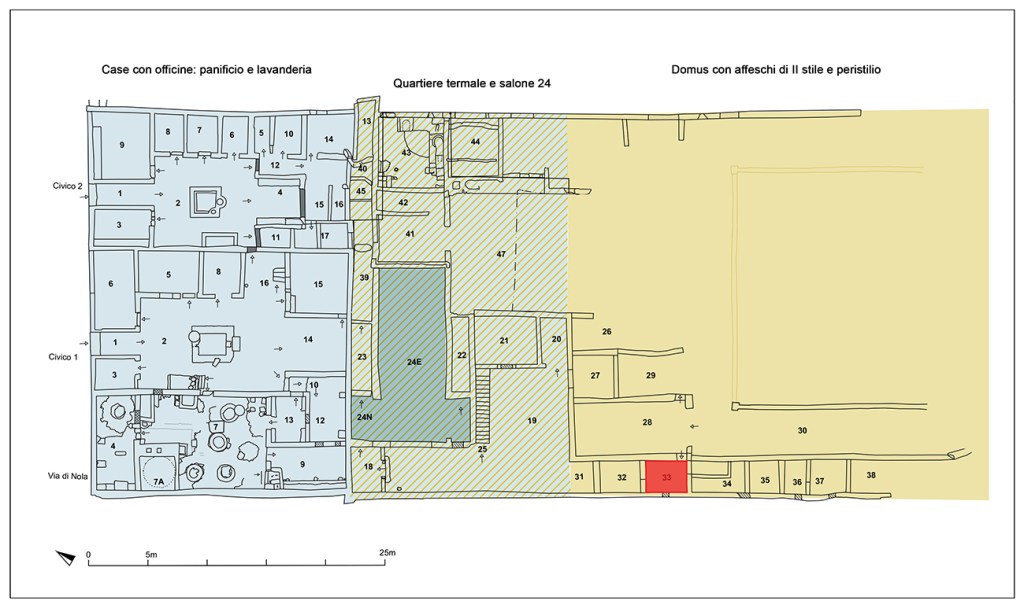 Continuano i rinvenimenti nell’area di scavo della Regio IX, Insula 10 di Pompei, dove sono in corso indagini archeologiche nell’ambito di un più ampio progetto volto alla messa in sicurezza dei fronti di scavo.