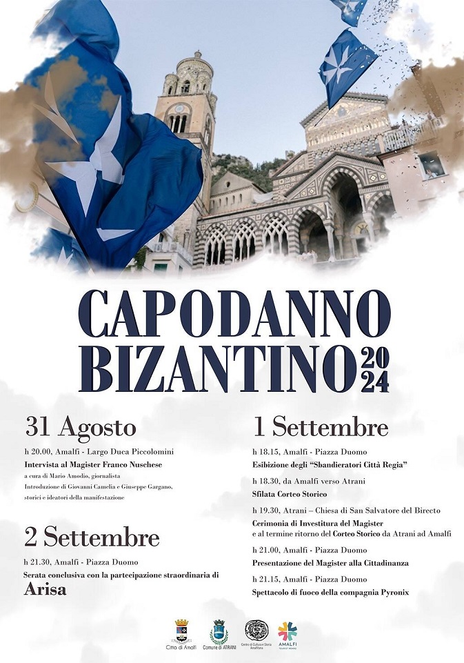Il Capodanno Bizantino, celebrato dal 1999, rievoca lo splendore dell’antico borgo costiero nel suo periodo di massimo fulgore, quando la millenaria tradizione bizantina fissava l’inizio del nuovo anno al 1° settembre. Questa manifestazione è diventato l’evento turistico-culturale di punta in Campania rievocando un’epoca in cui la Repubblica di Amalfi dominava il Mediterraneo, intrecciando rotte che collegavano i porti di tre continenti, diffondendo conoscenze e ricchezze che continuano a testimoniare la sua grandezza.