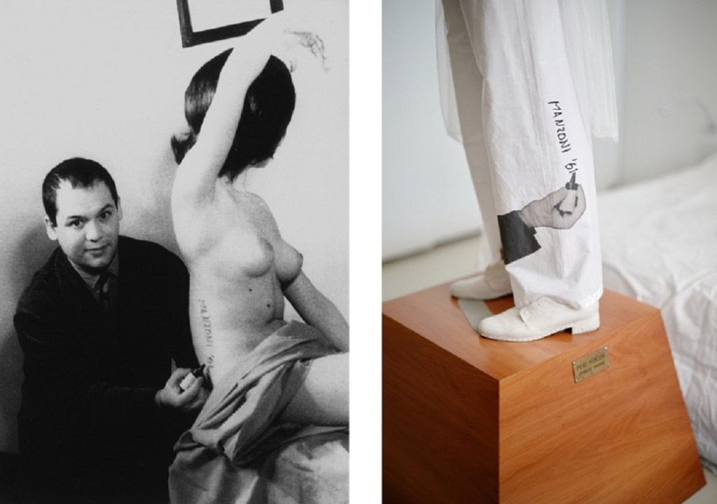 Più espliciti sono i riferimenti alla concezione di arte e identità artistica di Piero Manzoni. Nell’impronta e nella sua firma Manzoni riflette non solo su se stesso nel mondo, ma anche sul potere dell’atto artistico.