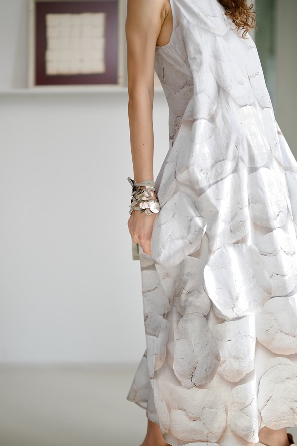 Caratterizzati dell’attenzione all’oggetto, alle sue forme, e in primis al legame con la vita e il quotidiano che contraddistingue la produzione dell’artista milanese, i capi della collezione #TOUCH evocano senza imitare, sono creati a partire da intuizione e interpretazione per rivendicare a loro volta il proprio status di opera d’arte in movimento. È proprio l’intuizione che contraddistingue il fare di Maria Calderara, un sentire che si avvicina a quello di Manzoni.