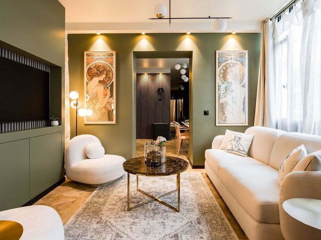 Accogliente e arredata con grande gusto, questa casa con un cortile in cui ci si può rilassare, si trova a pochi passi dal Canal Saint-Martin ed è caratterizzata da una tonalità di verde tra le più trendy della stagione.