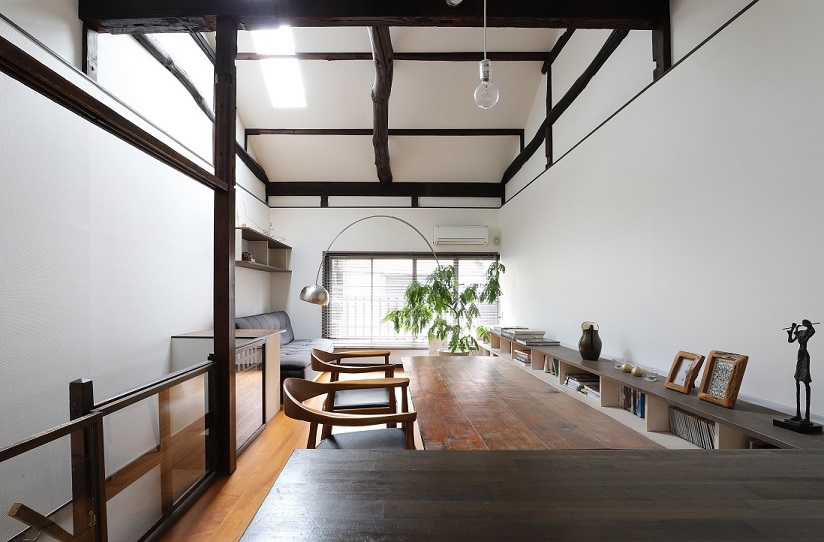 Questa casa, ideata dall’architetto Motoji Funatsu, presenta un mix di scelte stilistiche, combina stili unici come una scala a chiocciola con pareti a vista e mobili classici in legno, riflettendo la stagione che celebra contrasti e accostamenti di tendenze.