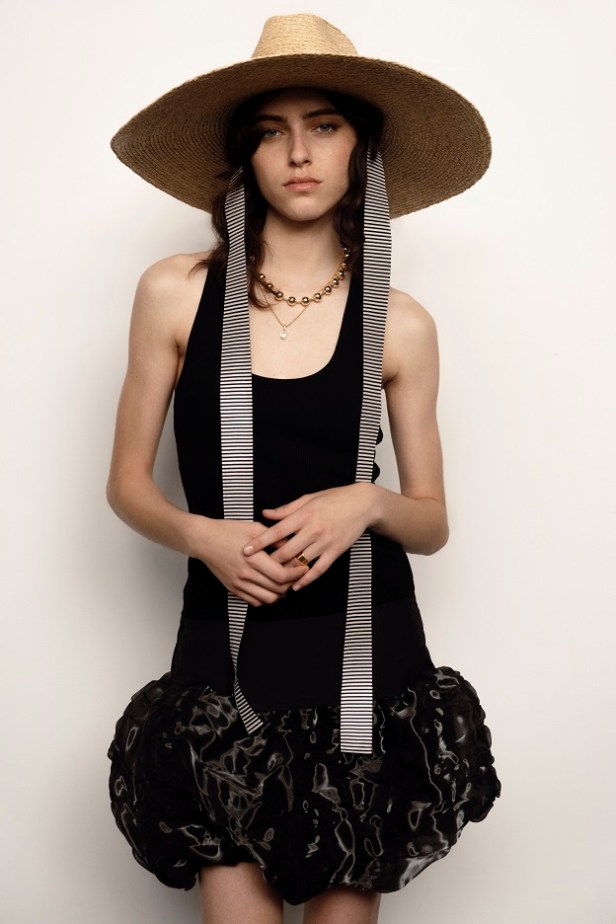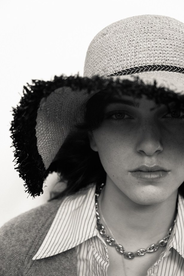 Riprodotte fedelmente, con mesi di lavoro di intreccio manuale ed artigianale in Ecuador, queste paglie hanno un aspetto etereo. Delicatamente traforate ed eleganti, ricordano i ricami a giorno nei candidi Sophie e Medea, o nei fiocchi in raso o fini passamanerie in bianco e nero che decorano i modelli.
