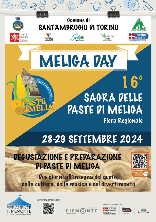 Situato all’imbocco della Valle di Susa, lungo il corso della Dora Riparia, Sant’Ambrogio di Torino si può considerare come l’anticamera del comprensorio montano valsusino. Il simbolo del territorio è la Sacra di San Michele, visitata da migliaia di turisti ogni anno. In paese si possono apprezzare alcune costruzioni medioevali di pregio, come il Palazzo Abbaziale, la cinta muraria, il Palazzo del Feudo e la sua torre, ma anche la torre della Dogana e quella campanaria dell’XI secolo. Sant’Ambrogio è anche un paese attivo in cucina e deve una parte della sua recente notorietà alle Paste ‘d Melia ‘d Sant’Ambreus, che sono le protagoniste del Meliga Day, la cui sedicesima edizione è in programma sabato 28 e domenica 29 settembre, con il patrocinio della Città metropolitana di Torino.