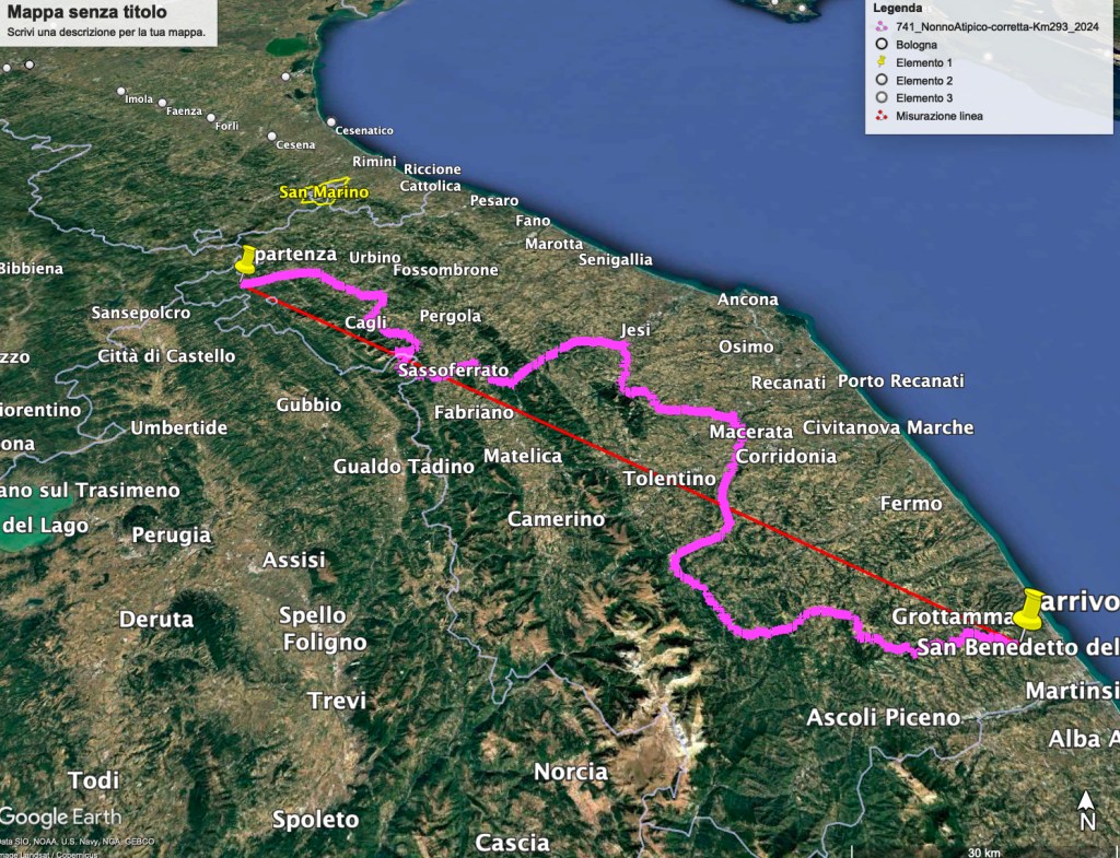 Nonostante ciò, prendo questa competizione con leggerezza. Trovo che sia un format coinvolgente e, soprattutto, formativo. Aiuta a scoprire il nostro territorio in modo intimo e autentico. Quest’anno il percorso si snodava interamente nelle Marche, collegando Mercatello sul Metauro ad Acquaviva Picena, attraversando da nord a sud una regione ricca di storia e bellezze naturali.