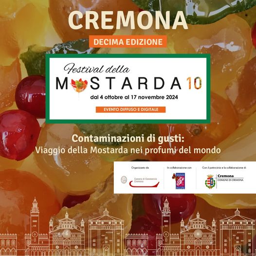 Prende il via venerdì 4 ottobre la decima edizione del Festival della Mostarda, la celebre manifestazione culinaria cremonese che propone un ventaglio di appuntamenti digitali ed in presenza di tradizione gastronomica, innovazione e turismo organizzato dalla Camera di Commercio di Cremona, in collaborazione con la Strada del Gusto Cremonese, con il patrocinio del Comune di Cremona, della delegazione di Cremona dell’Accademia Italiana della Cucina, del Touring Club sezione di Cremona, dell’Unione Cuochi Regione Lombardia e dell’Istituto Superiore Einaudi di Cremona.