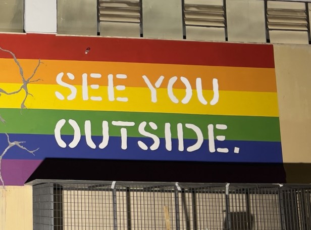 Realizzato con il sostegno di Dr. MARTENS e il supporto del Municipio VIII di Roma Capitale, il murale ritrae una persona che spalanca le ante di un armadio lanciando un grido liberatorio. Ai lati, su un lungo arcobaleno, si legge in inglese: “c’è luce oltre l’armadio, ci vediamo fuori”. L’opera, infatti, fa riferimento all’espressione “Coming Out Of the Closet” (letteralmente: uscire fuori dall’armadio), ovvero il gesto di dichiarare pubblicamente la propria identità di genere e il proprio orientamento sessuale.