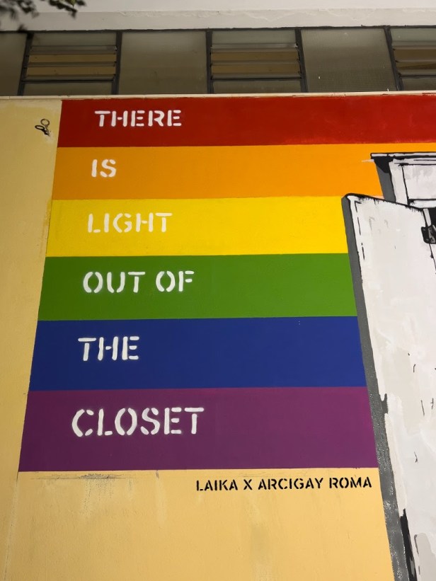 Dopo il successo del murale dedicato a Michela Murgia, la street artist Laika è tornata a collaborare con Arcigay Roma in occasione del Coming Out Day – ricorrenza che si celebra internazionalmente ogni 11 ottobre –, realizzando nel quartiere San Paolo della capitale una nuova opera dal titolo Out Of the Closet.